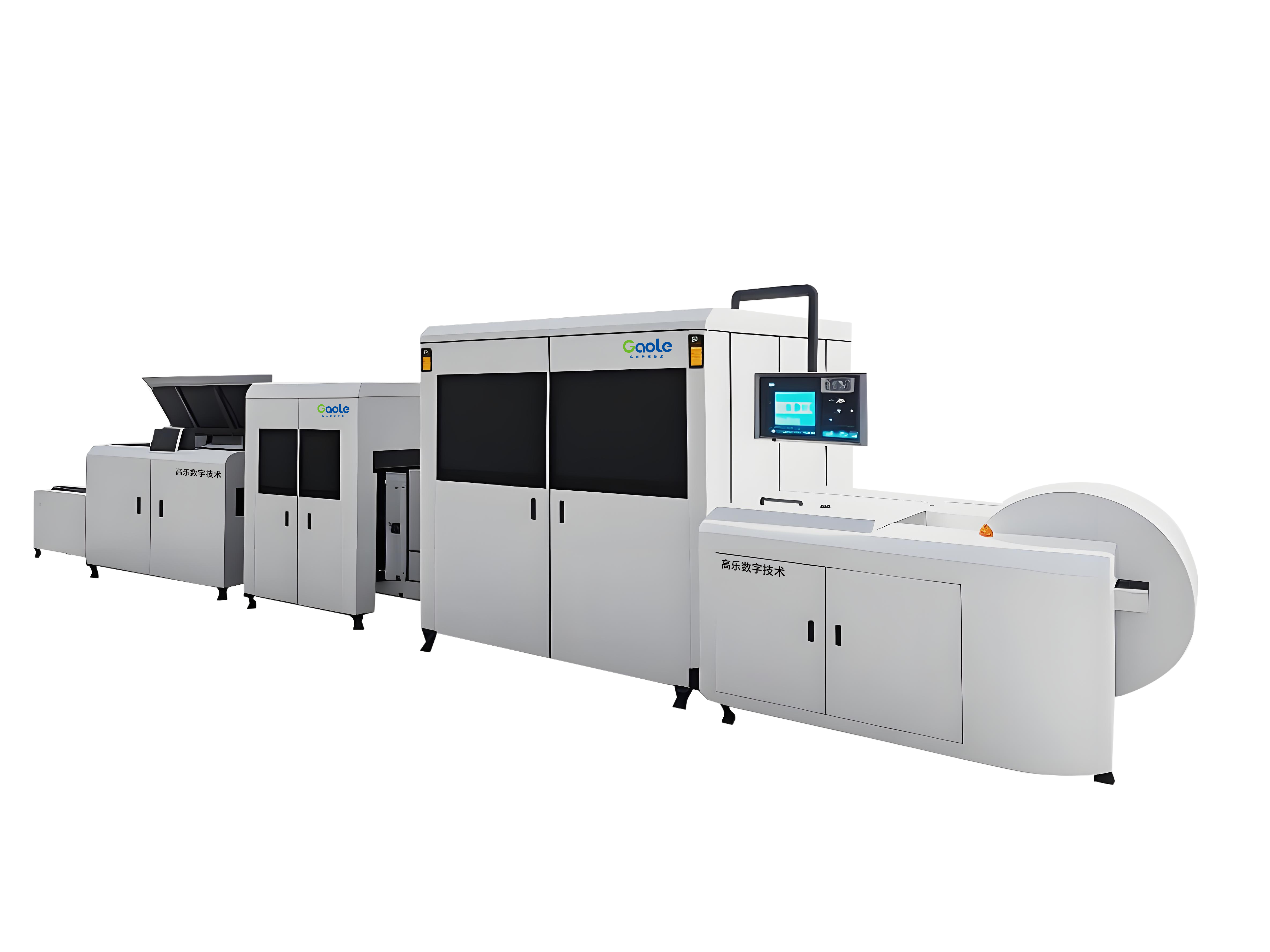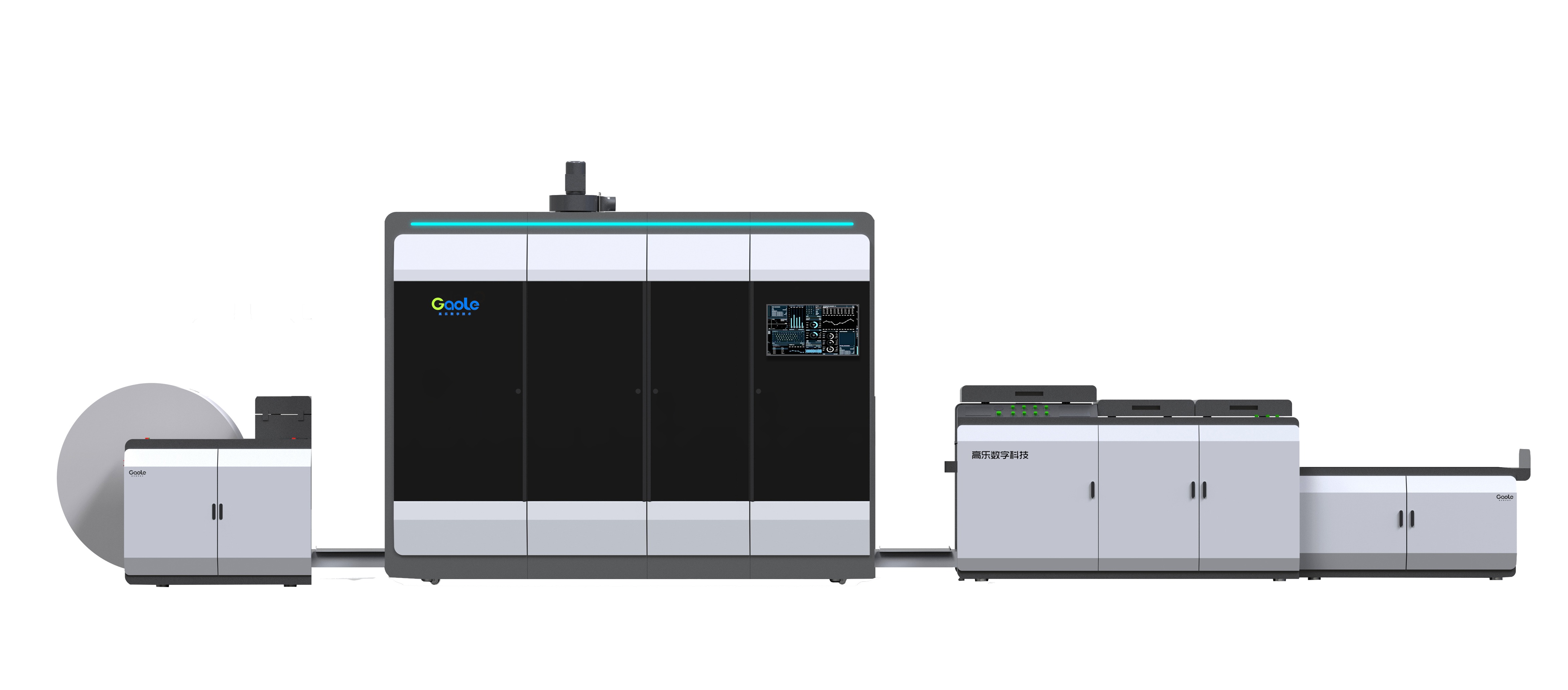 四色双面印刷,single pass打印技术,最高速度可达120m/min,采用无轴上纸机构,伺服电机恒张力放卷设计,搭配超声波非接触式除尘系统